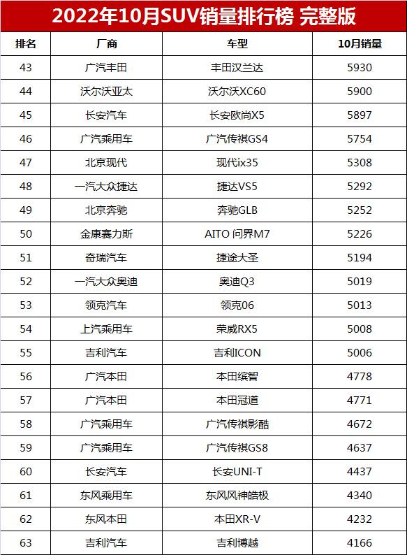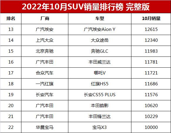 84 次2020年11月SUV銷量環比增幅排行榜完整版名單