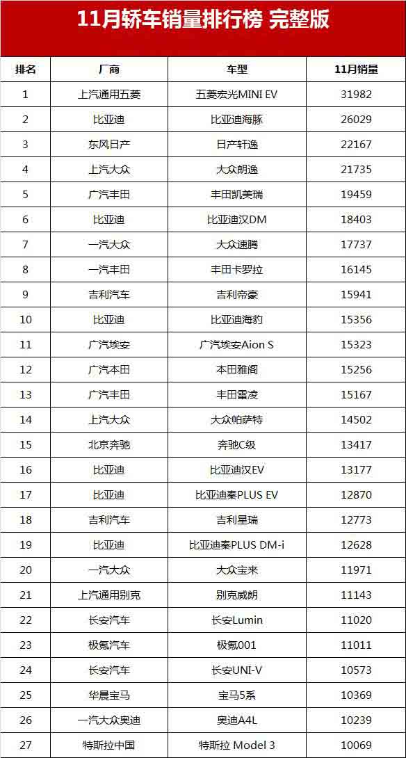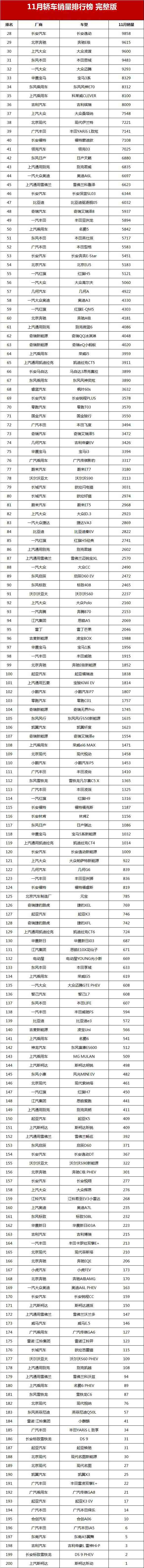194 次2024年11月全國合資轎車銷量排行榜完整版(零售量