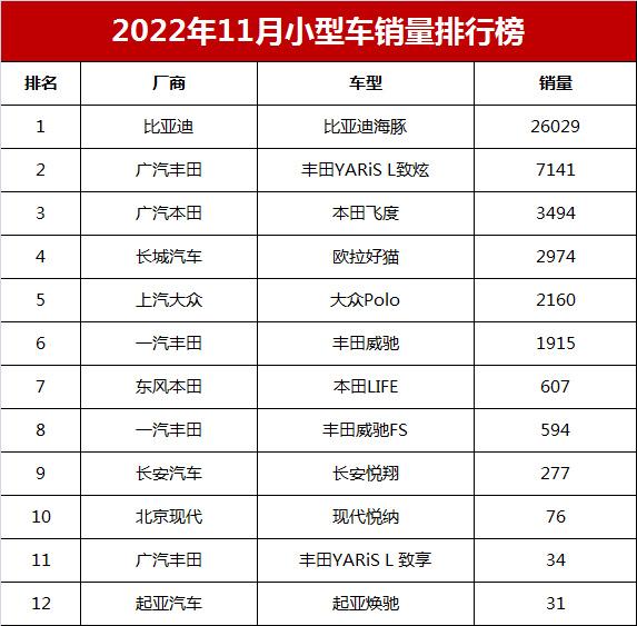 155 次2021年11月新能源銷量小型車排行榜完整版名單