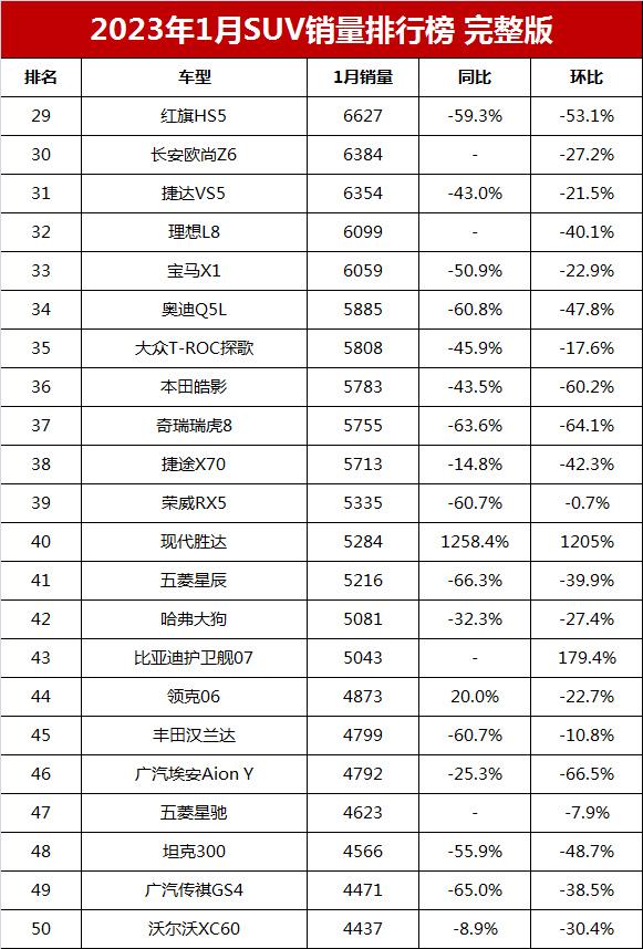167 次2017年7月SUV銷量環比增幅排行榜完整版名單