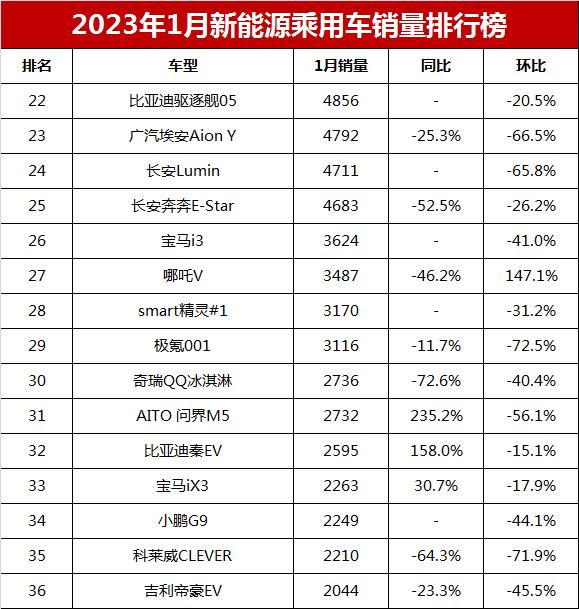 11 次2019年1月新能源微型銷量排行榜完整版名單