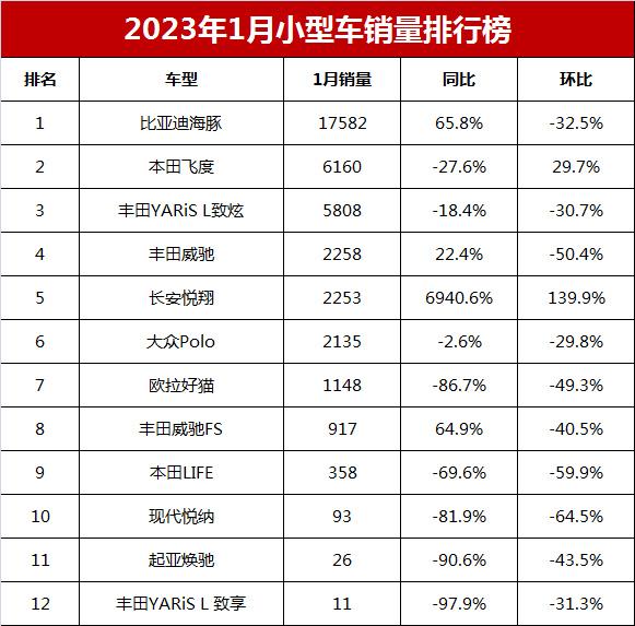 193 次2022年1月合資品牌小型車銷量排行榜完整版名單
