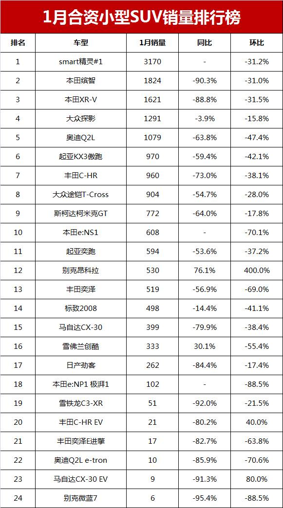 213 次2023年12月全國合資SUV銷量緊湊型車排行榜完整版(零售量