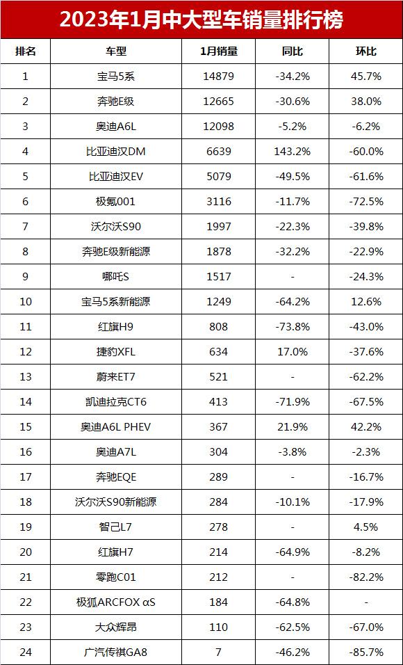 163 次2025年1月全國(guó)國(guó)產(chǎn)轎車銷量中大型車排行榜完整版(批發(fā)量