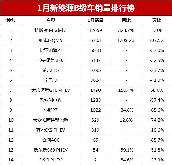 31 次2021年1月新能源轎車銷量中型車排行榜完整版名單