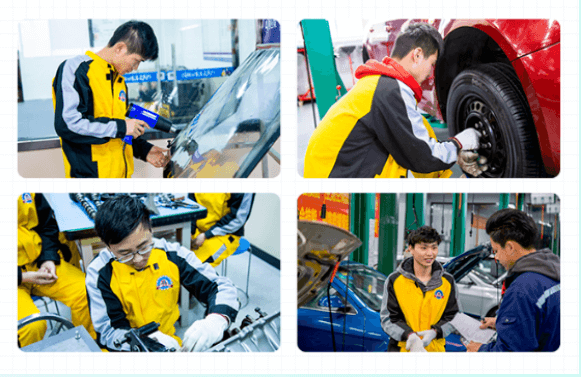 學技術,實訓課很重要!五一活動期間,來校來校參觀咨詢,可免費體驗拋光劃痕、車身改色、側擋貼膜、整車故障診斷、四輪定位、汽車故障講解等相關課程。