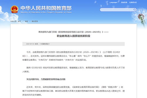 《國家職業教育改革實施方案》正式確定職業教育在我國教育體系中是一個單獨種類的教育,職業教育的正名很好地完成了國家教育體系,也為職業教育的發展提供了很好的保障。截至目前,我國共有職業學校1.15萬所,在校生2857.18萬人,開設了1200余個專業和10余萬個專業點。國家還通過組織各類大型技能大賽來促進職業教育院校學生之間的交流與學習,提升年輕人的技能,保障學生就業通暢。
